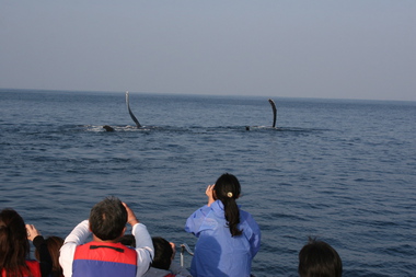 クルーザーがペアクジラさんをウォッチング中、クジラさんとの遭遇を