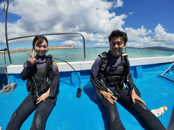 ダイビング初挑戦の仲良し2名様!しっかり講習を行ってから乗船⛵