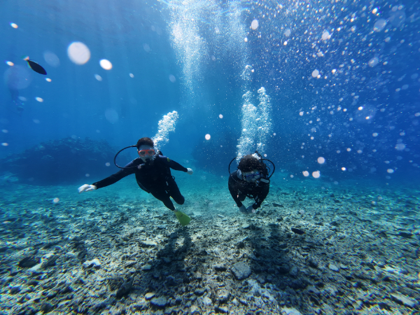 シュノーケル、体験ダイビングそれぞれ2回転!