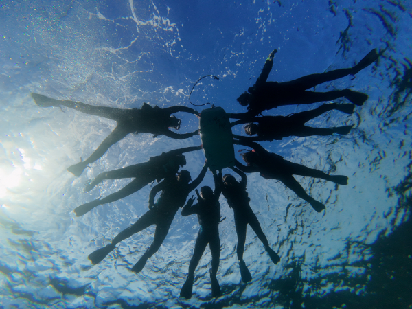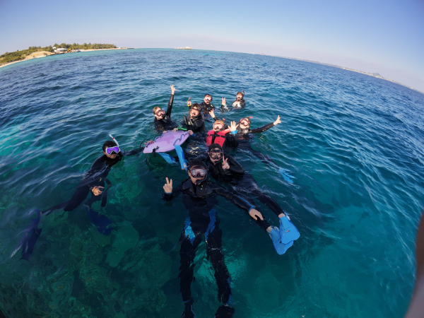 最初にみんなで写真を撮ってシュノーケルスタート