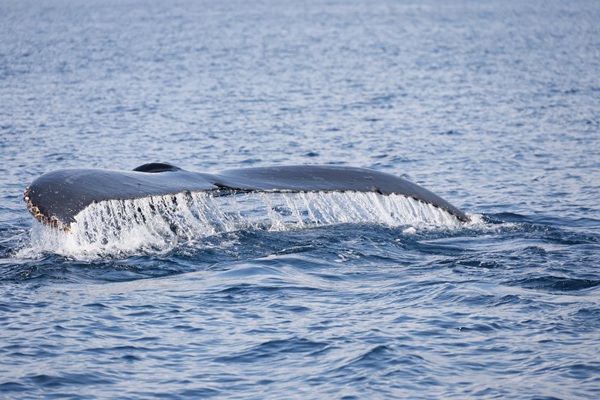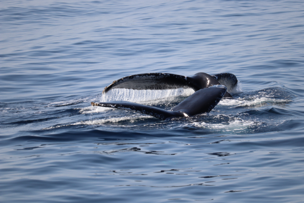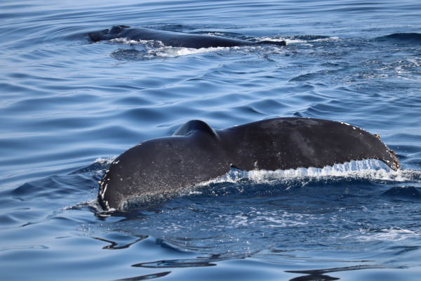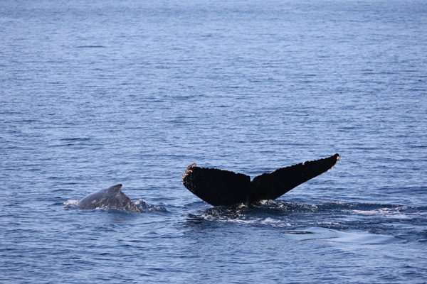 母さんクジラは尾びれをしっかり上げてくれます♪