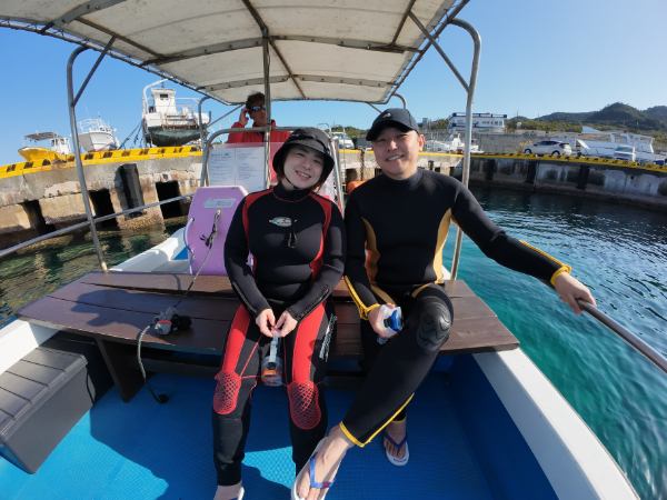 午後便は出航前に本部町ダイビング協会船よりクジラ情報をいただき