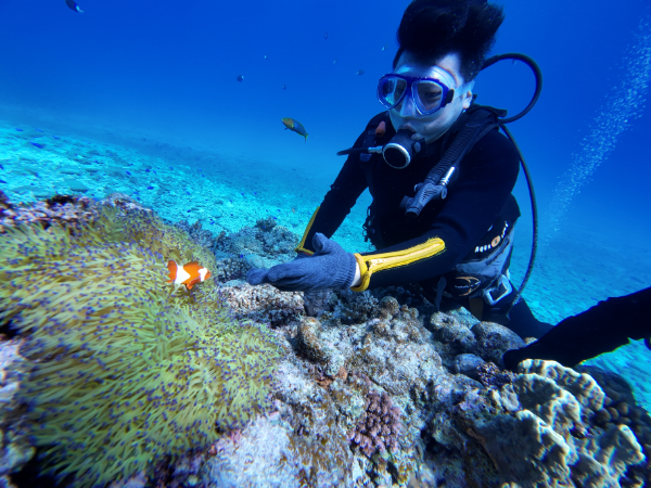 綺麗な珊瑚礁を見ながらスイスイ泳いだ先には☟