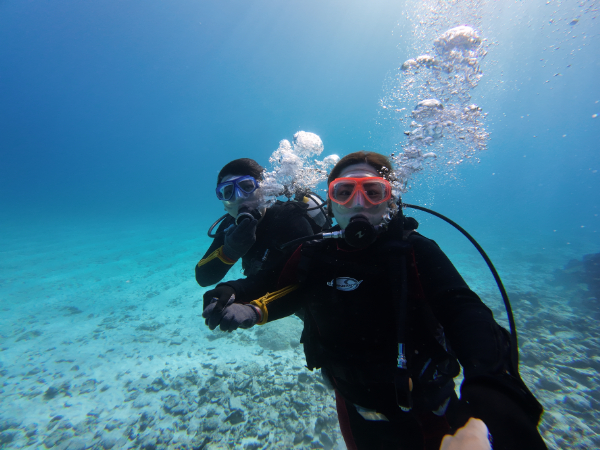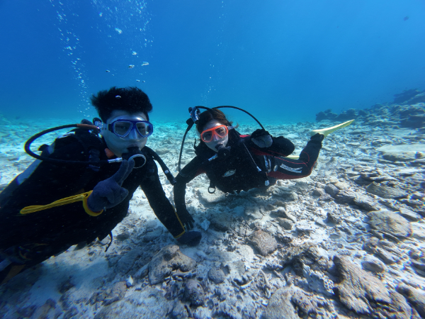 水面で呼吸を整えゆっくりと潜降開始!水中へレッツGO!