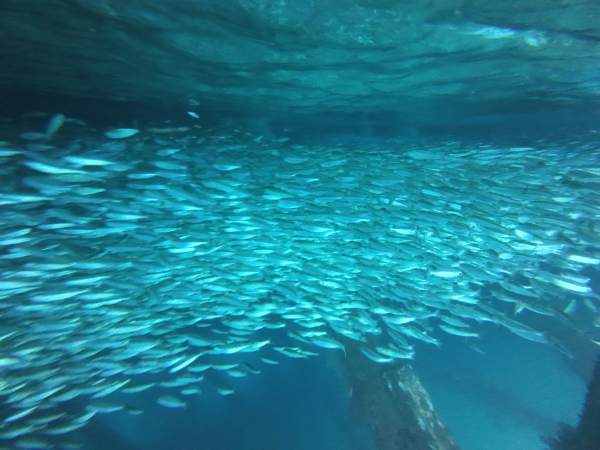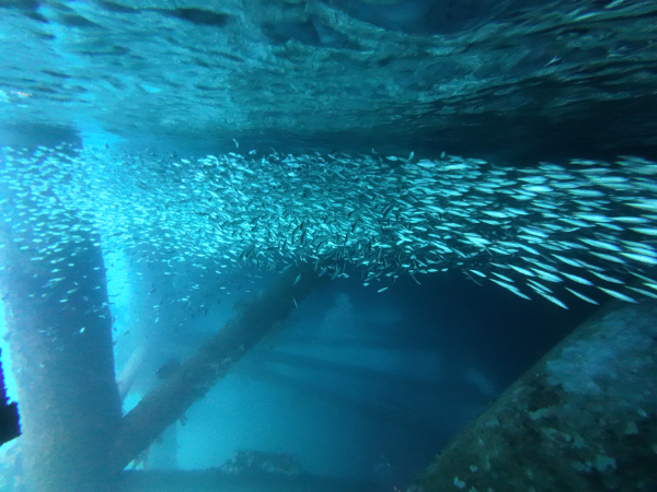 そして、今日は最近、行方不明になっていたミジュンを探しに行ってきました。ミジュンという名前は沖縄の方言で、ニシンの仲間です。しばらく賑わっていた沢山の群れですが急に行方不明になっていましたが、戻ってきていましたよ。