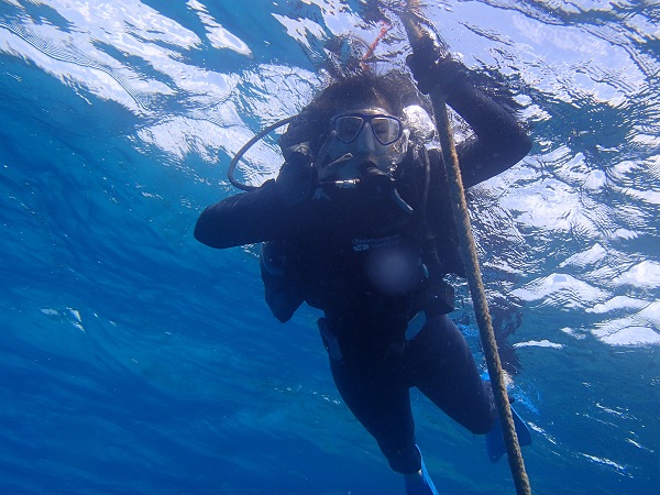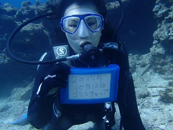 潜行して海底に着いてお客様今日の日付とポイント名を書いたホワイトボードを見せてくれたのですが…