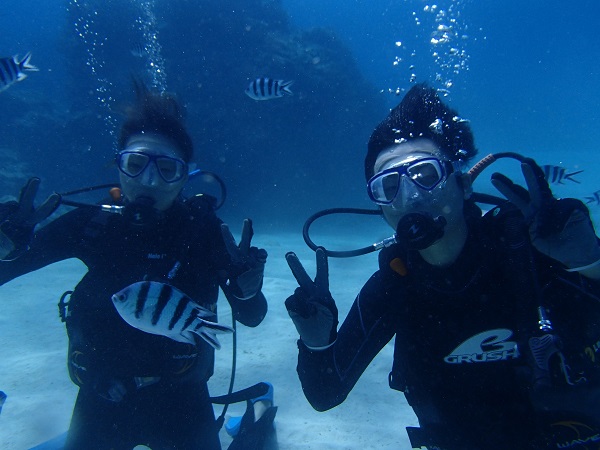 ダイビングのお客様は広島から来られた仲良しカップル!
