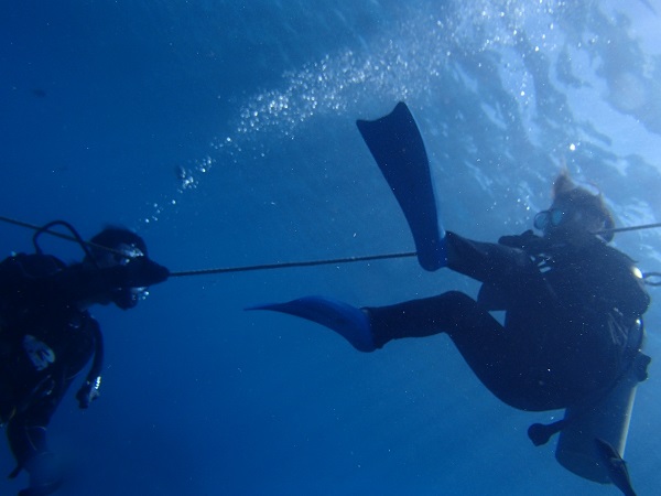 しかしここはインストラクターのうでの見せ所!言葉巧みに気持ちを落ち着かせながらいざ海の世界へ!