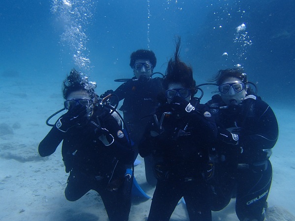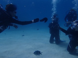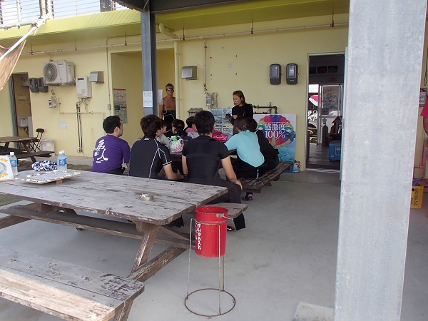 後ろに怪しい人が居ますが、皆さん初ダイビングとあって真剣に講習してます(^O^)/