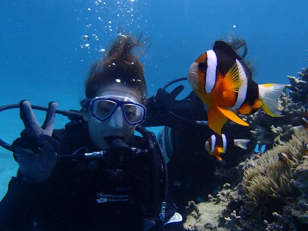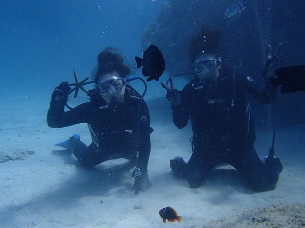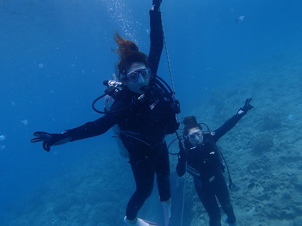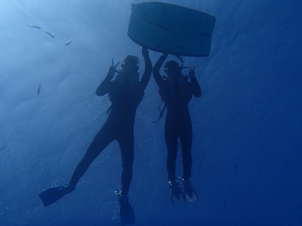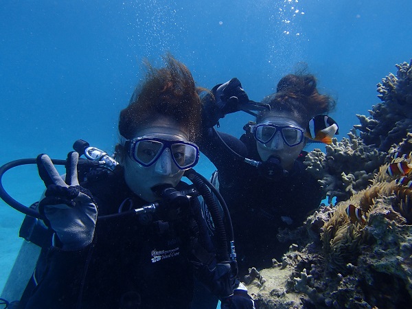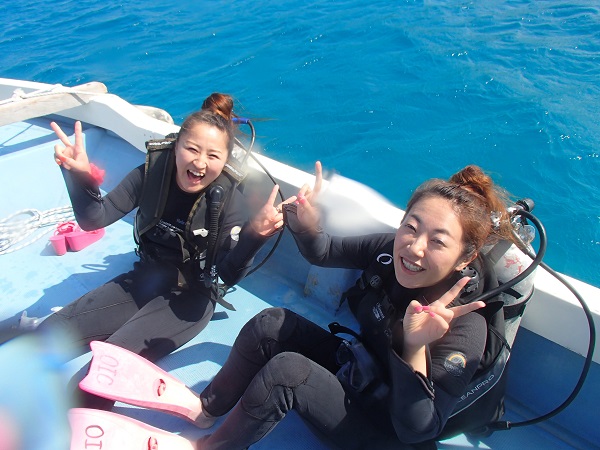 去年もそして今回も、水納島に行けなかった(涙)というお姉さんとダイビング初挑戦でちょっと緊張気味のお姉さん。